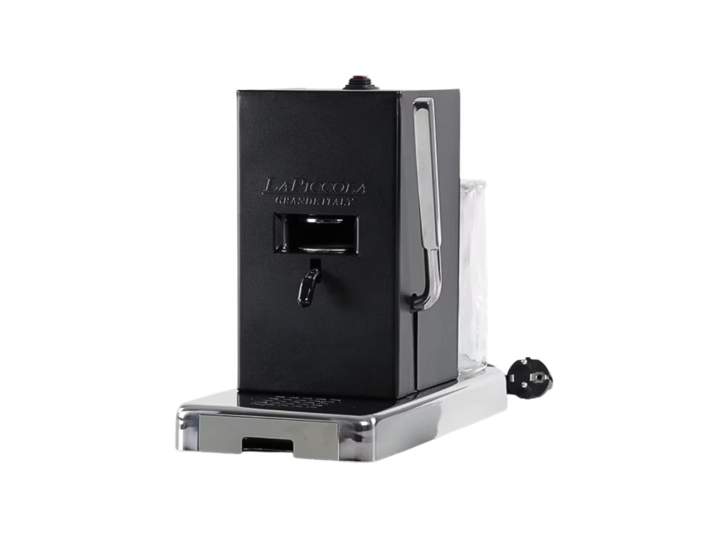 Pákový kávovar La Piccola v atraktívnom čiernom matnom prevedení je majstrom v príprave tej najlepšej kávy. Jeho povrch je vyrobený z kvalitného materiálu, vďaka ktorému si zachováva svoj elegantný vzhľad a vyžaduje len minimálnu údržbu. Kávovar funguje na princípe kávových podov (POD-y sú ekologickou formou kapsulovej kávy), ktorých priemer je 44mm. Súčasťou kávovaru je nádržka na vodu vyrobená zo skla s objemom až 1 liter. Prednosťou kávovaru je mimoriadne rýchly ohrev vody a to už do 5 sekúnd od zapnutia prístroja. Výkonné čerpadlo sa postará o bezchybné fungovanie spotrebiča.